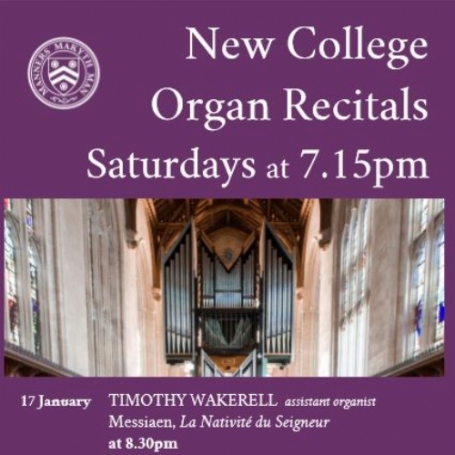Our organ recital series takes place on Saturdays after Evensong, and sees players from New College and London. In addition to this, our Assistant Organist, Timothy Wakerell will play Messiaen's 'La Nativite du Seigneur' on Thursday 17 January.